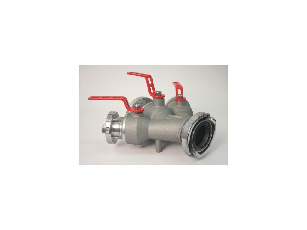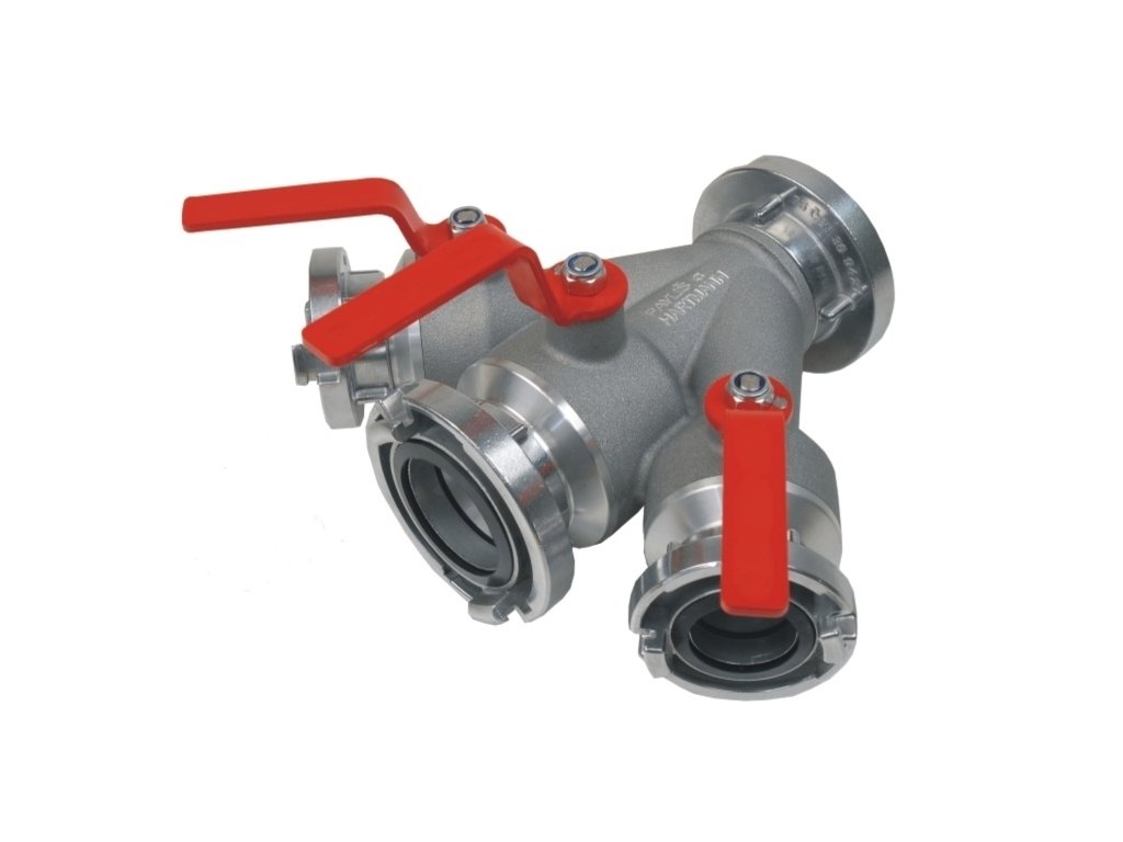 Rozdělovač se používá k rozdělení vodního vedení 75 na dva proudy 52 a jeden 75. Výtoková hrdla jsou opatřena kulovými kohouty s možností uzavření a regulací jednotlivých proudů. Ovládací páky jsou vyrobeny z ocele a odlehčeny pro větší odolnost při manipulaci a zároveň snížení hmotnosti rozdělovače.