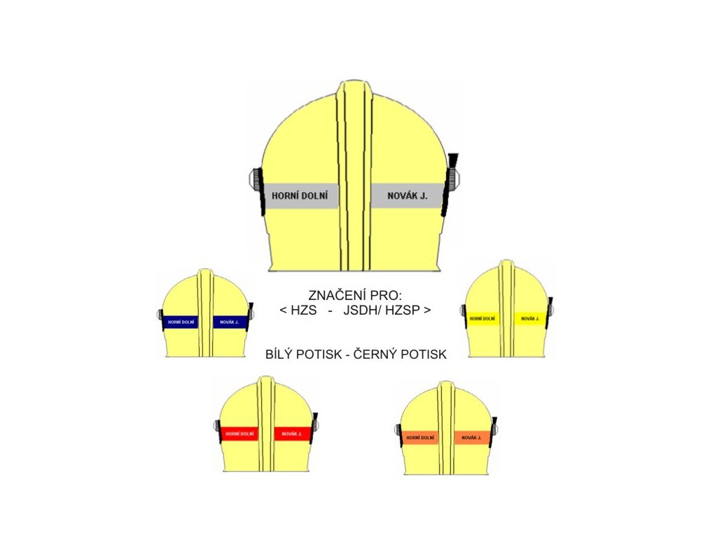 Pár samolepicích pásů k označení hasičů na zadní straně přilby.