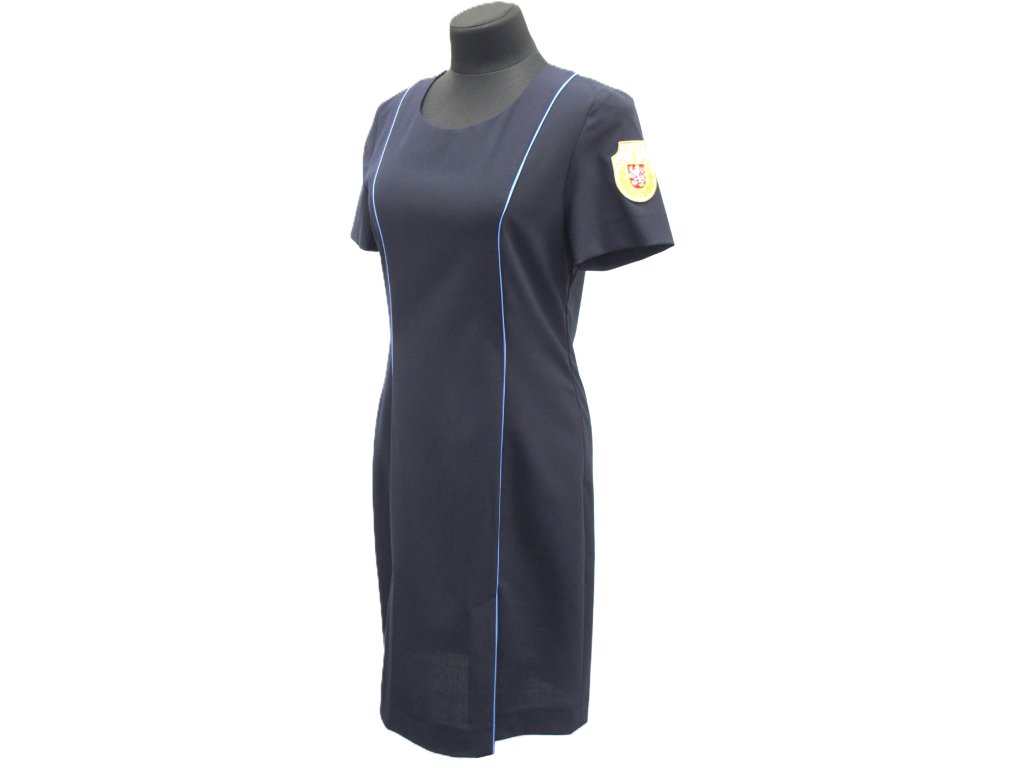 Dámské šaty, bez podšívky, zapnuté na zdrhovadlo v levém bočním švu, s krátkým rukávem. Šaty jsou opatřeny našitým znakem SH ČMS na levém rukávu.